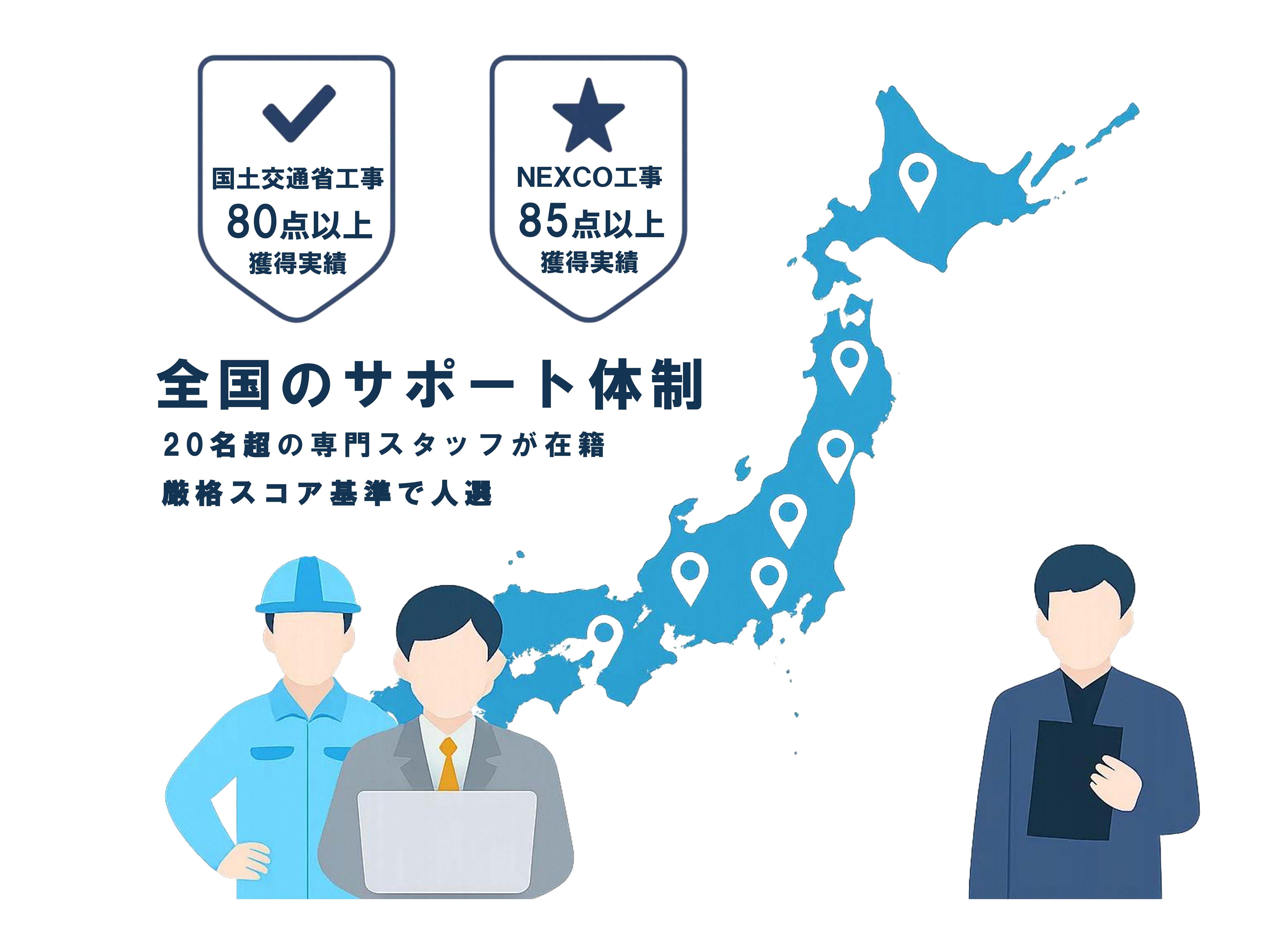 オンラインで全ての業務が完結するため、場所を選びません。日本全国の建設企業様を対象に、質の高いサービスを均一に提供することが可能です。