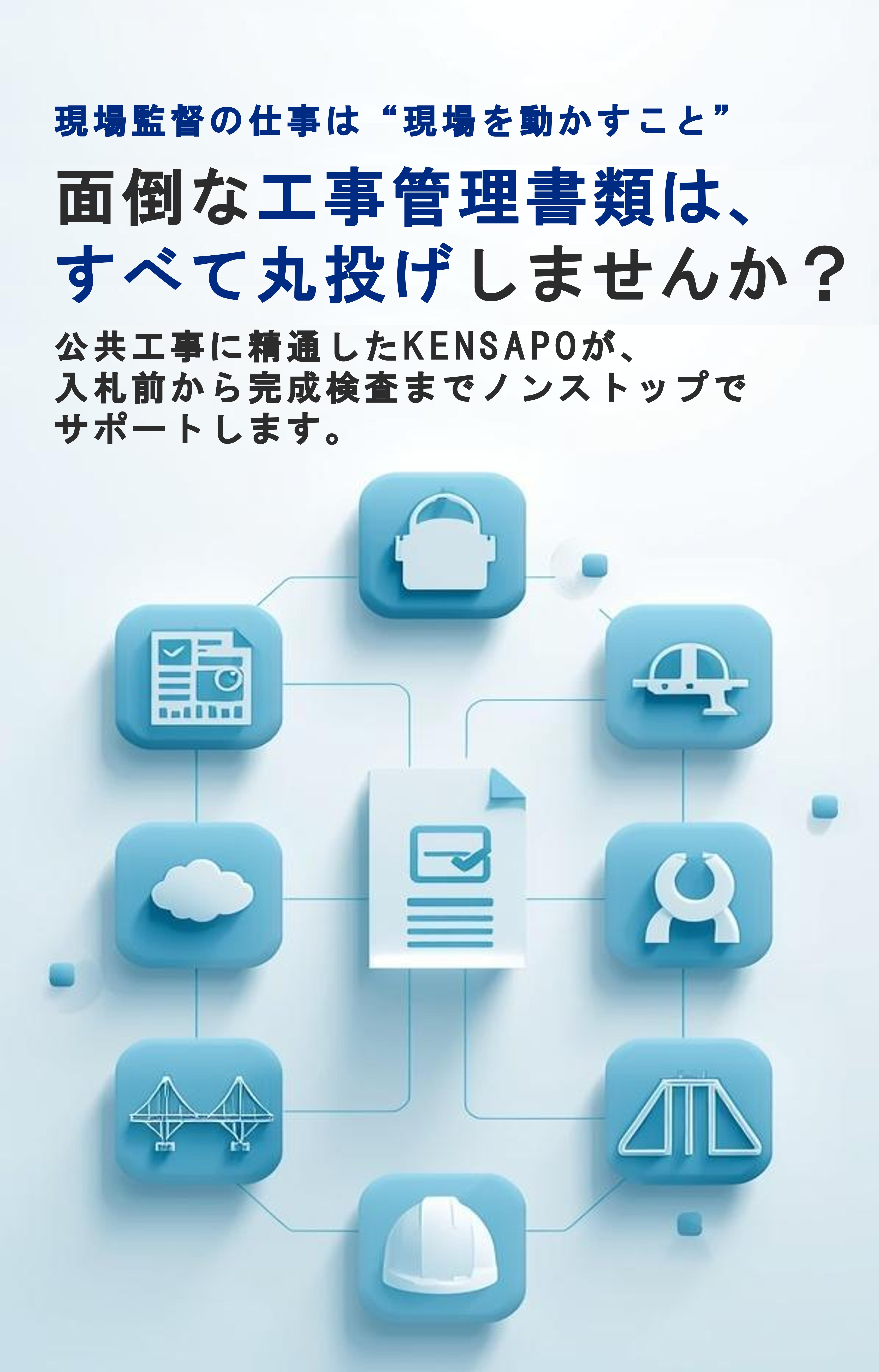 A. 施工計画書、施工体制台帳、安全管理書類、品質管理図、出来形管理図など、公的工事・民間工事問わず、工事管理に関するあらゆる書類に対応可能です。まずはお気軽にご相談ください。